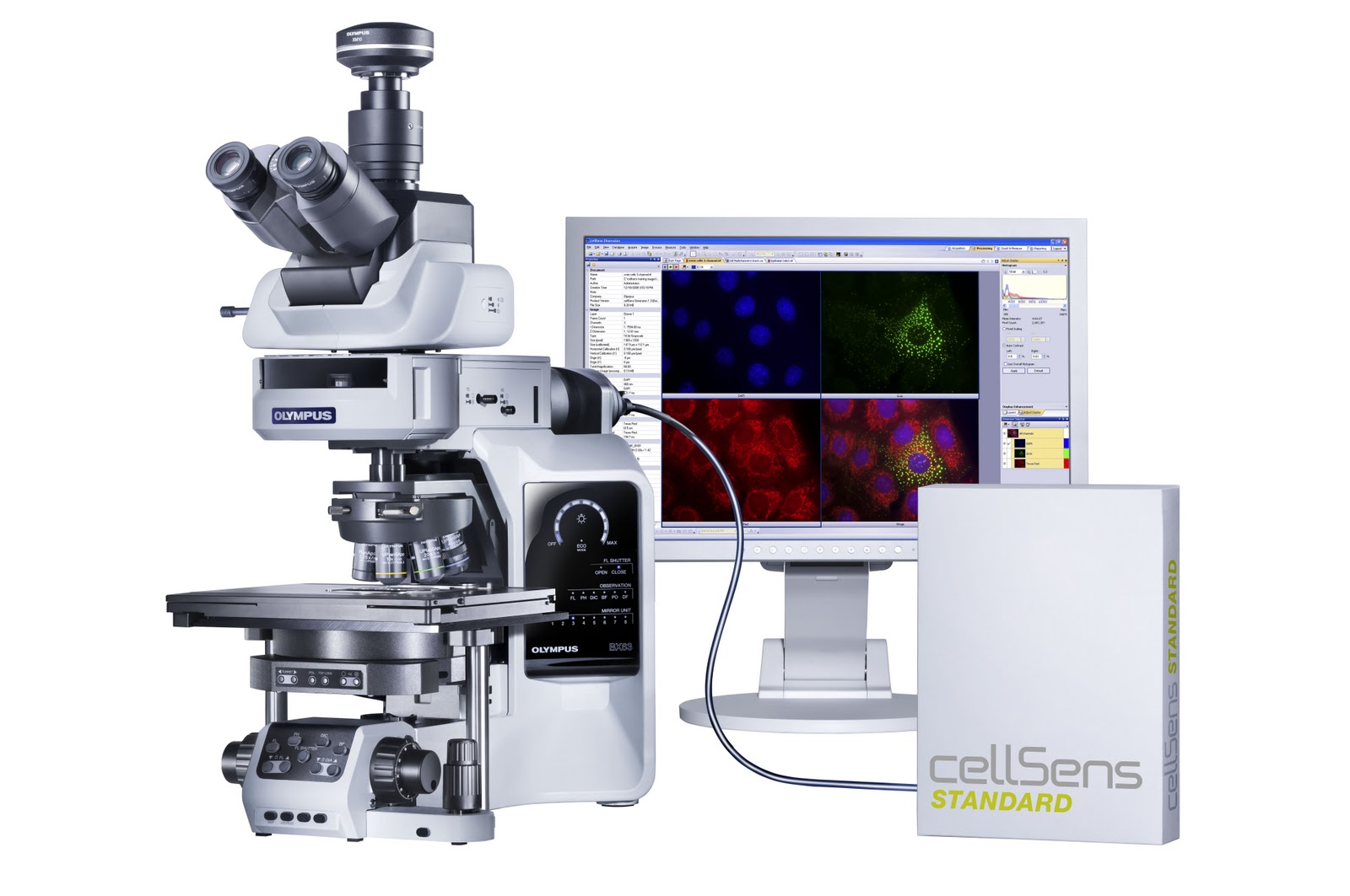 Yaşam Bilimi uygulamaları için geliştirilmiş ‘’cellSens’’ ve endüstriyel uygulamalar için geliştirilmiş ‘’PRECiV’’ yazılımları ile birlikte Evident - Olympus kameraları; mikroskopları daha da etkili, yüksek performanslı analiz istasyonlarına dönüştürür. Yapay zeka entegrasyonu ve sezgisel kullanım özelliği sayesinde; sorunsuz görüntü elde etme, filtreleme, ölçüm, dokümantasyon ve arşivleme sağlar.