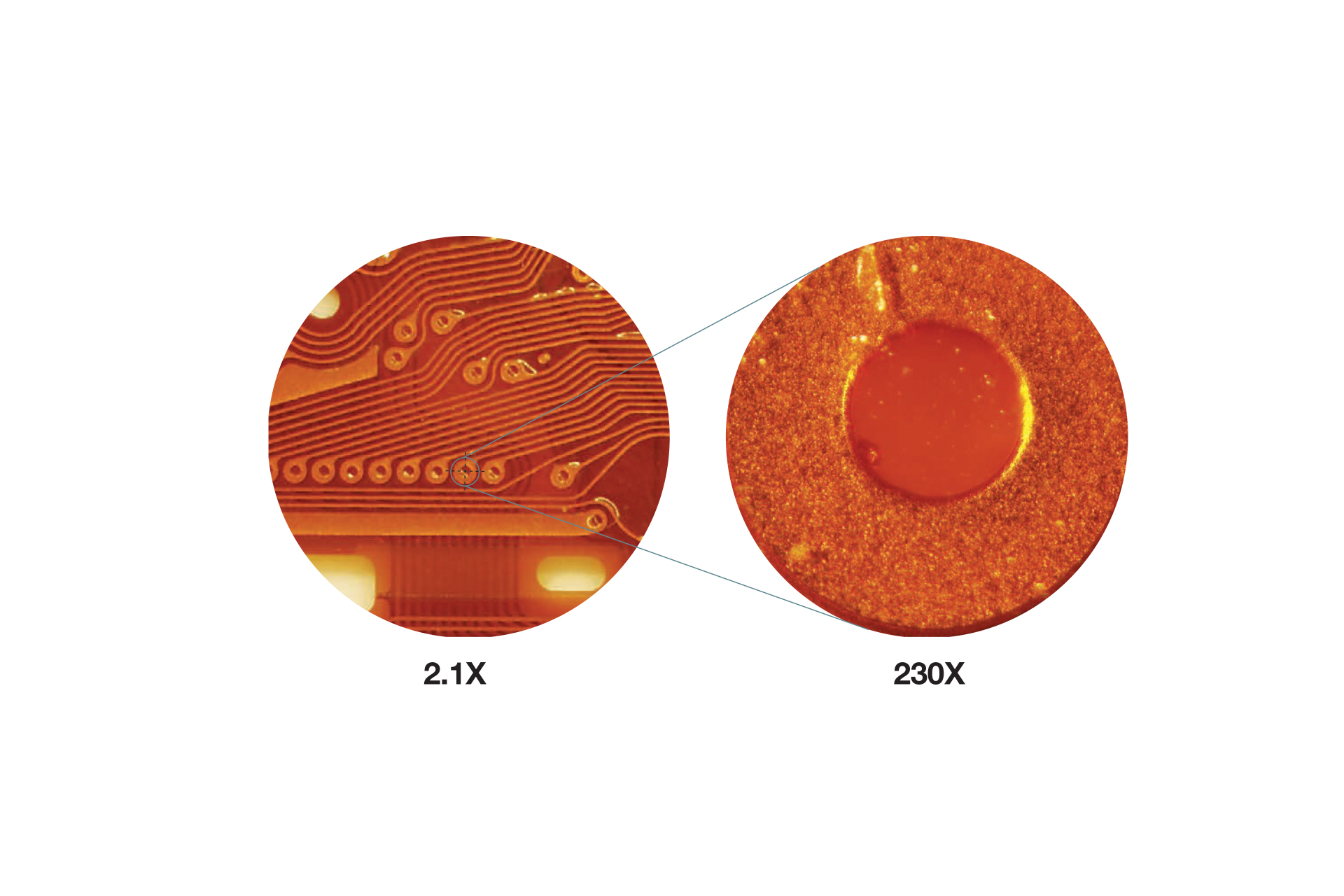 SZX10 stereo mikroskobun 1x objektifi ile 6.3x ila 63x gibi geniş bir büyütme aralığı, kullanıcıların objektif lenslerini değiştirmek zorunda kalmadan çeşitli büyütmelerde inceleme yapmasını sağlar. Tekrarlanabilir ve doğru görüntüleme için tasarlanmış olan 11 konumlu “click-stop” özelliği sayesinde tutarlı ve hızlı inceleme yapılmasına imkan sağlar.