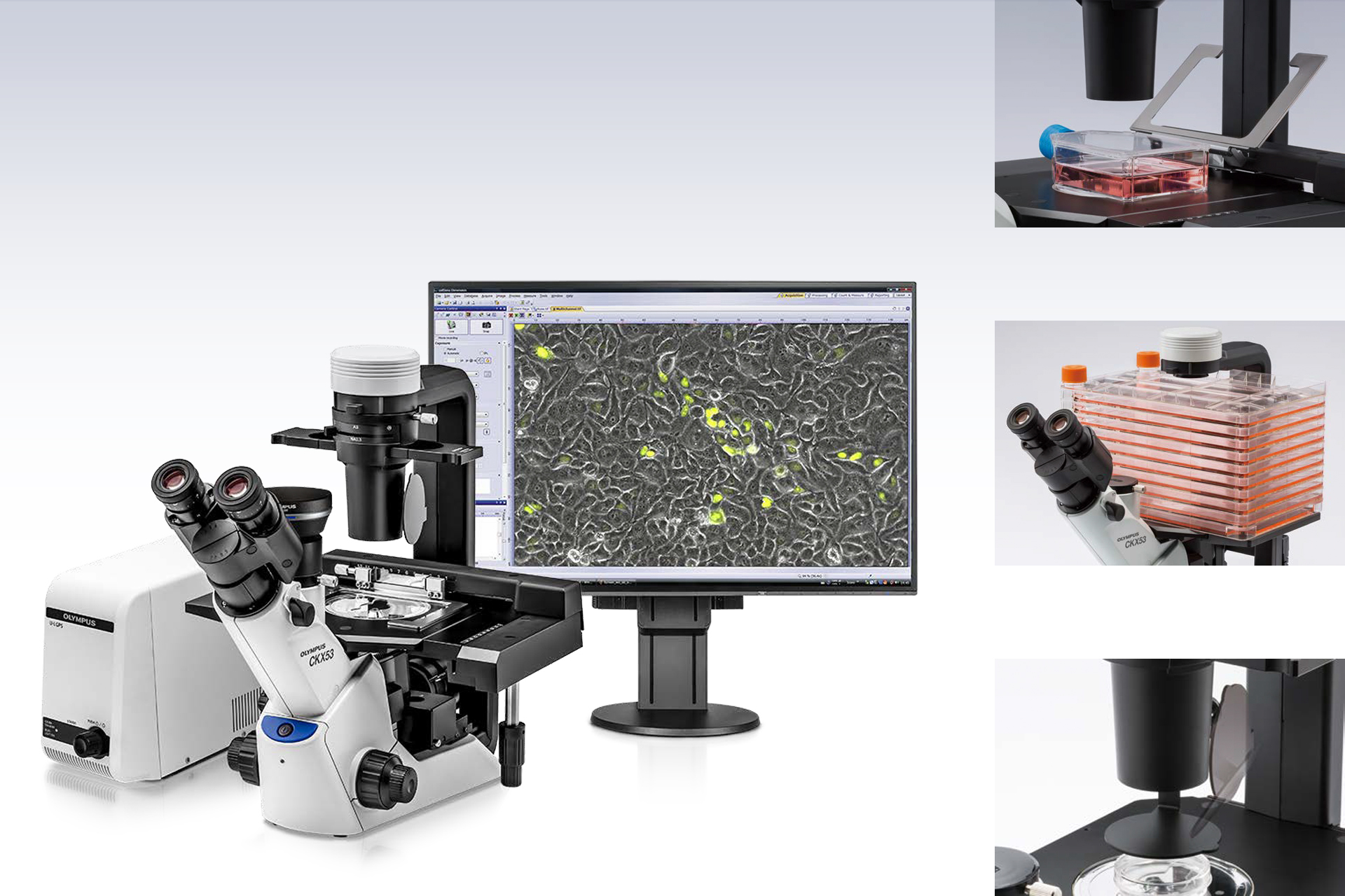 CKX53, işlev, kalite ve makul maliyet gibi birçok fikir gözetilerek tasarlanmıştır. Sadece üniversitelerin biyoloji laboratuvarları, özel laboratuvarlar ve eğitim kurumları için değil; aynı zamanda son dönemdeki bir trend olan rejeneratif tıp alanında da müşterilere hitap etmektedir. CKX53 ters tip mikroskop, hücre kültürü çalışmalarına yönelik entegre edilmiş faz kontrast sistemi ile donatılmıştır ve bu sayede hücrelerin detaylı ve yüksek kontrastlı görüntülerini elde edebilirsiniz. Geniş görüş alanı sayesinde büyük ölçekli yapıları gözlemlemek ve incelemek için uygundur.