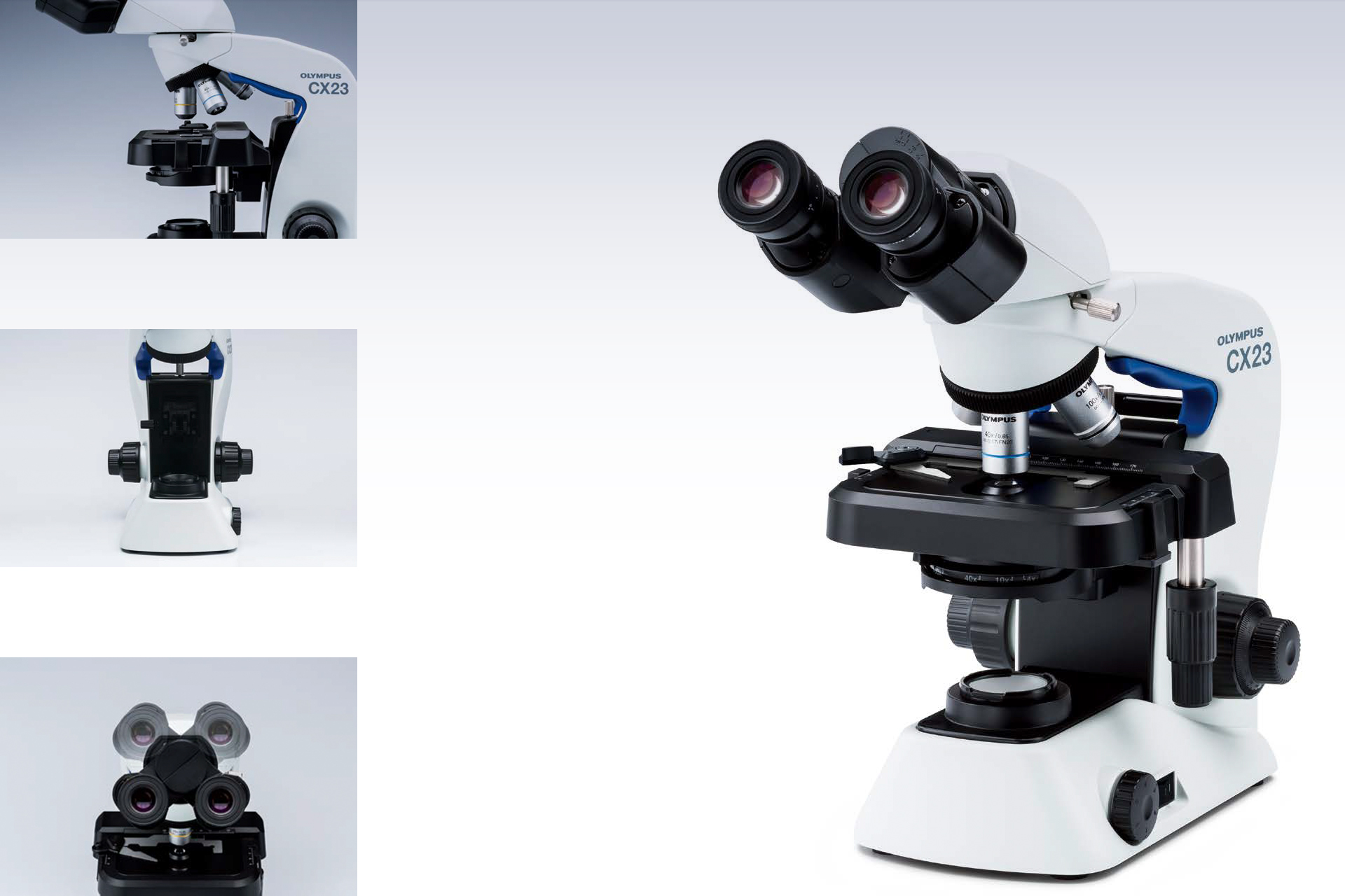 Öğrencilerin ve şahsi kullanım için patologların ihtiyaçları göz önünde bulundurularak tasarlanan CX23 mikroskop, eğitimsel mikroskopi iş akışını geliştirmek için idealdir. Dayanıklı ve güvenilir olmasının yanı sıra, sınıf içinde kolay taşınabilmesi ve kolay kullanımı için çeşitli tasarım özellikleri bulunmaktadır. Öğrenci mikroskobu olarak da kullanılan CX23'ün güvenlik önlemleri; mikroskobun taşınması sırasında veya uzun süreli kullanımda göz merceklerini, gözlem tüpünü, objektifleri ve tablayı korur.