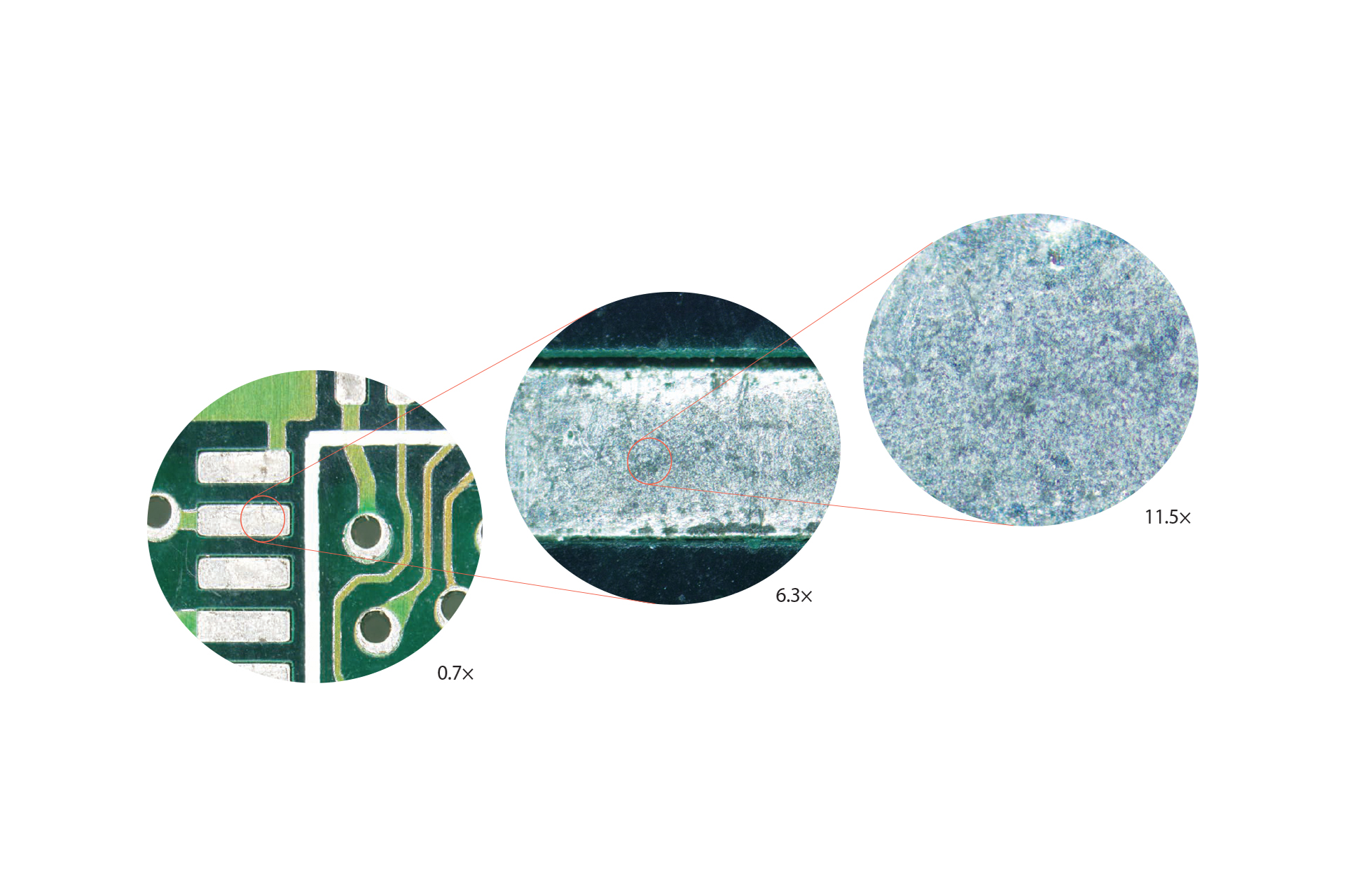 SZX10 stereo mikroskobun 1x objektifi ile 6.3x ila 63x gibi geniş bir büyütme aralığı, kullanıcıların objektif lenslerini değiştirmek zorunda kalmadan çeşitli büyütmelerde inceleme yapmasını sağlar. Tekrarlanabilir ve doğru görüntüleme için tasarlanmış olan 11 konumlu “click-stop” özelliği sayesinde tutarlı ve hızlı inceleme yapılmasına imkan sağlar.